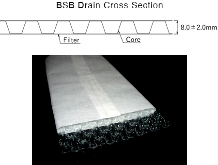 - BSB drain can adapt to the unevenness of the surface area and maintains the drainage capability during the consolidation settlement.