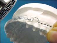To avoid the loop pressing into the gums, heat the plastic labial bow and then twist the metallic wire a little by hand while pulling it slightly.